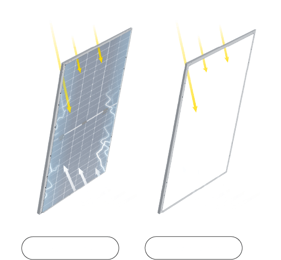 Generates power from both front and rear sides, capturing reflected light for more energy output.